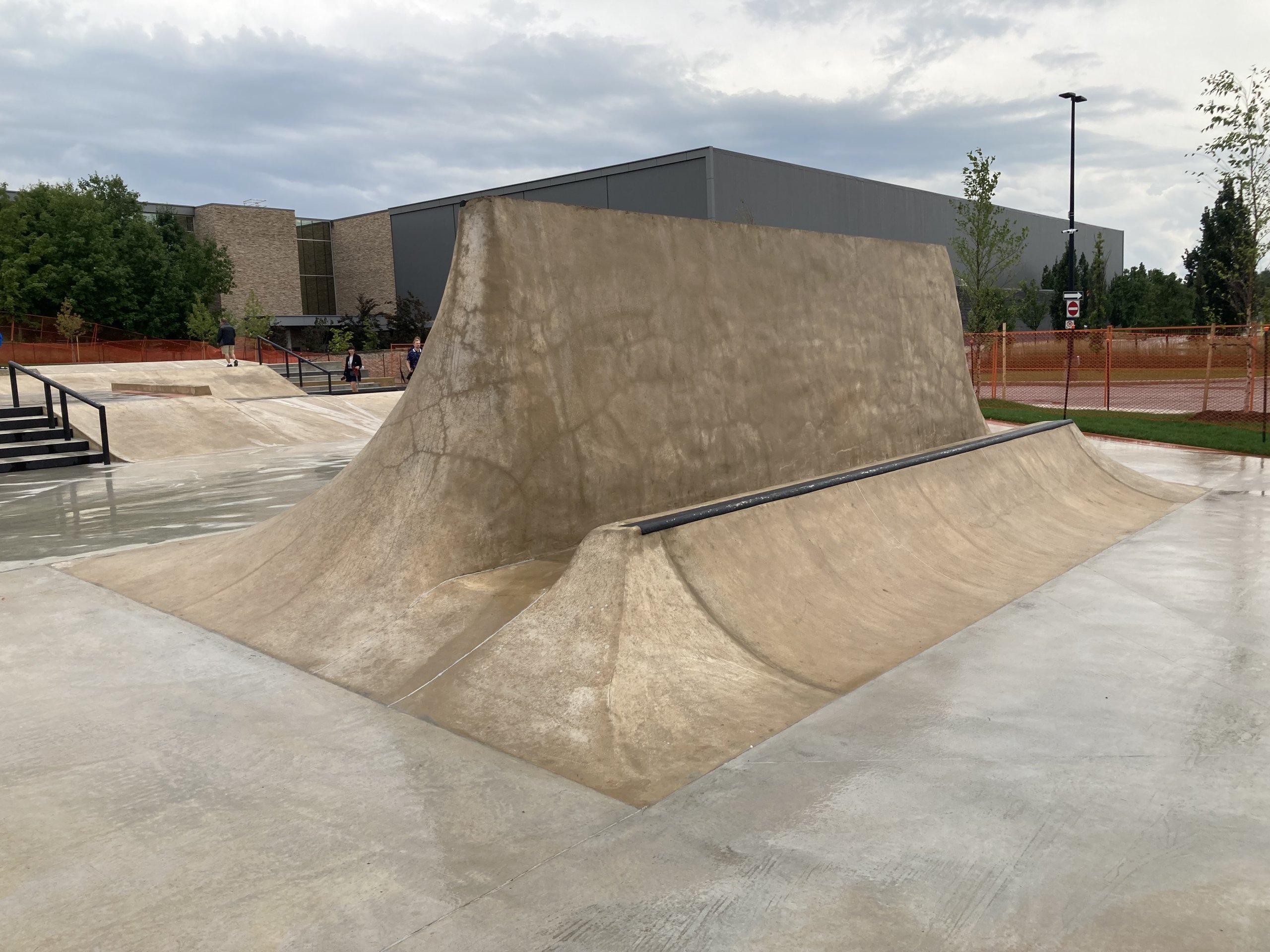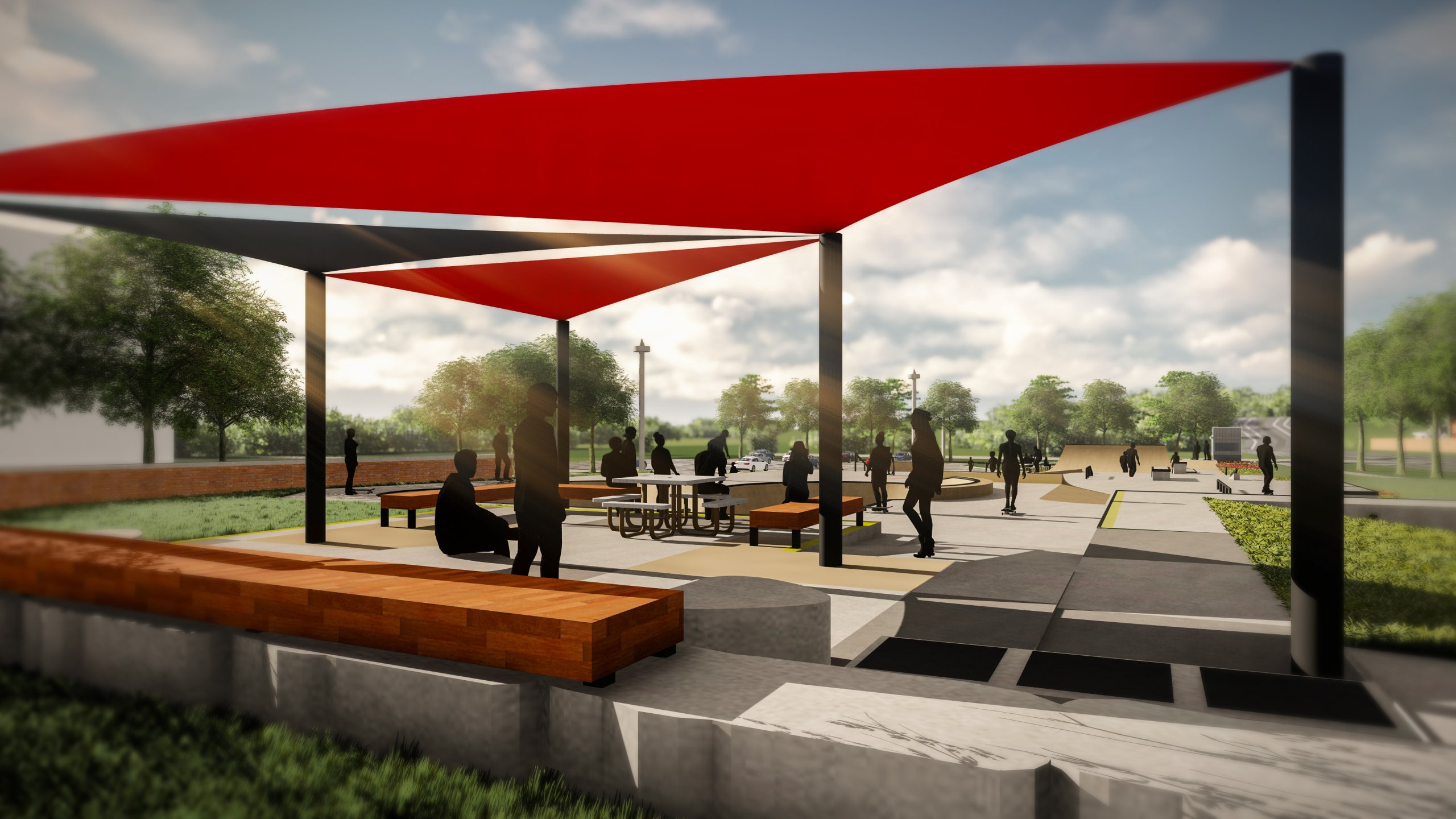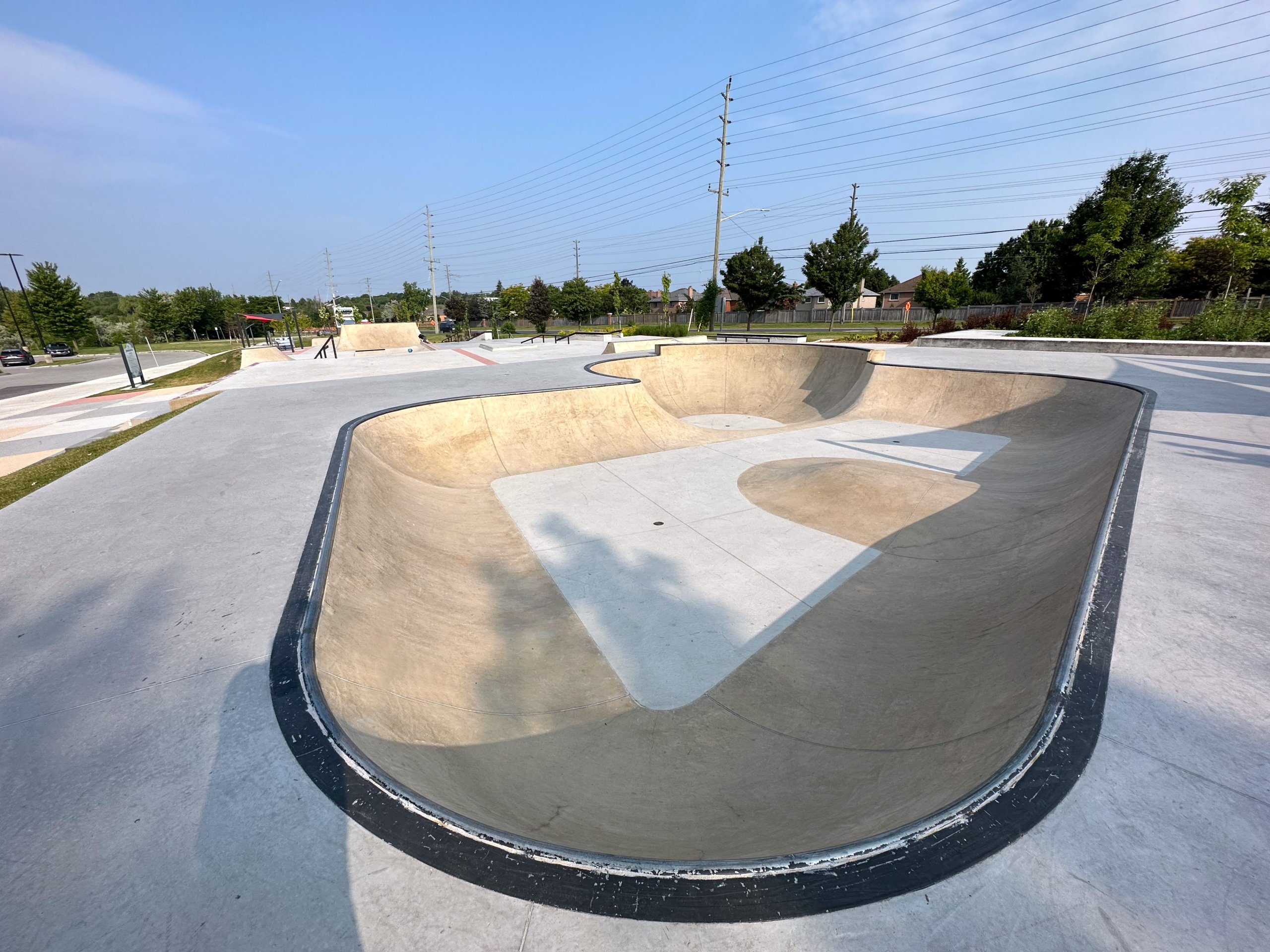 New Line Skateparks is proud to have led the design of the telMAX Outdoor Skatepark, a 20,000 square foot, all-wheels facility located adjacent to the MAGNA Community Centre in Newmarket, Ontario. This thoughtfully programmed park offers something for every rider, featuring a fully enclosed bowl, a dynamic street plaza, and a dedicated beginner zone to support skill development. A standout element of the design is a sculptural turnaround feature that anchors the park visually and functionally, adding a unique landmark quality to the space. Designed for both performance and comfort, the skatepark also includes a robust amenities program, with multiple seating areas and shade structures that invite community gathering and extended use throughout the day. Set in a high-profile location and built to accommodate riders of all styles and levels, the telMAX Outdoor Skatepark reflects Newmarket’s investment in vibrant, inclusive public spaces—and stands as one of the region’s premier destinations for action sports.