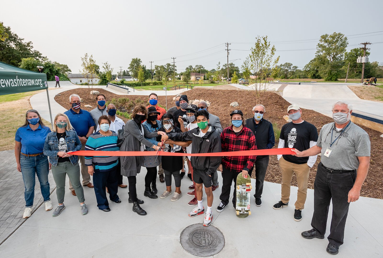 This marquee skatepark facility is the first of it’s kind in Michigan with it’s integrated green storm water management system and world class skateable terrain. Bio-filtration swales, rain gardens, recycled material and natural fibre concrete mix not only reduces the environmental impact of the development but offers a sustainable, functional and durable skatepark that will last decades into the future. The flowing street section, beginner area and multi leveled flow bowl offer every style of rider unique challenges and opportunities. The final mix of materials, color, and natural landscaping creates a park as beautiful as it is functional. With a vast list of partners including and large group of local advocates, the Skatepark Project, Ralph C. Wilson Jr. Foundation, Washtenaw County, Ypsilanti Township and the National Fish and Wildlife Foundation, the final product exemplifies CommUnity and inclusivity.